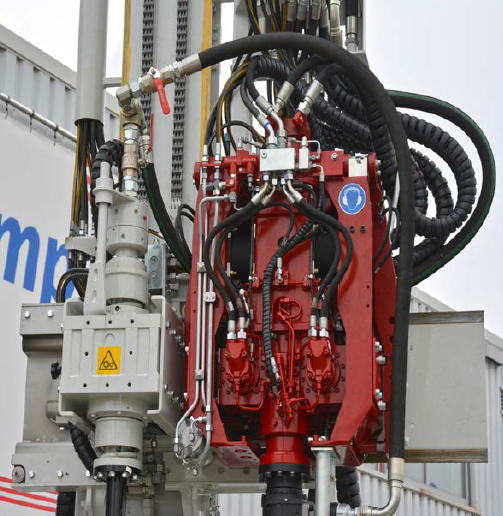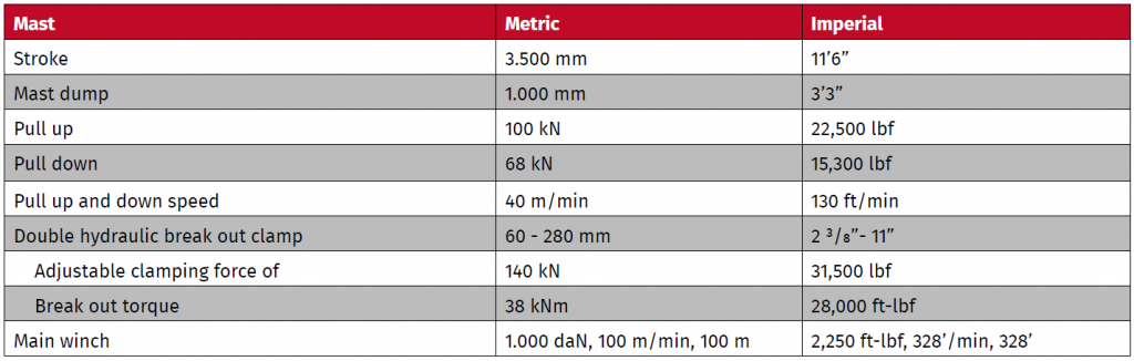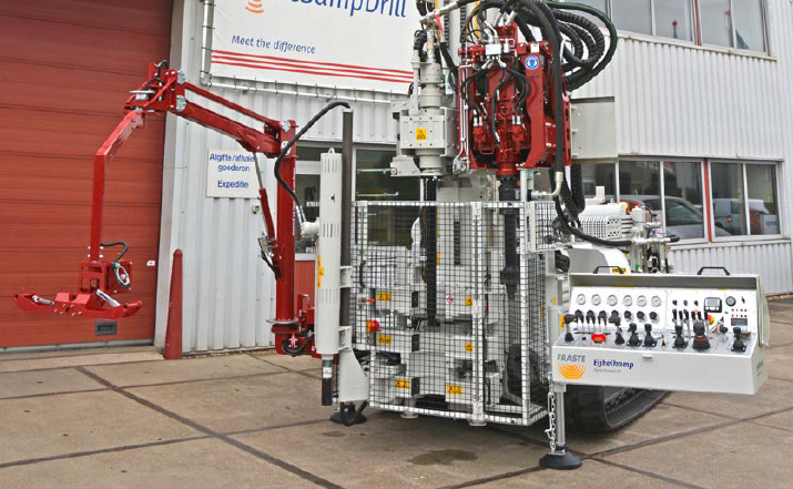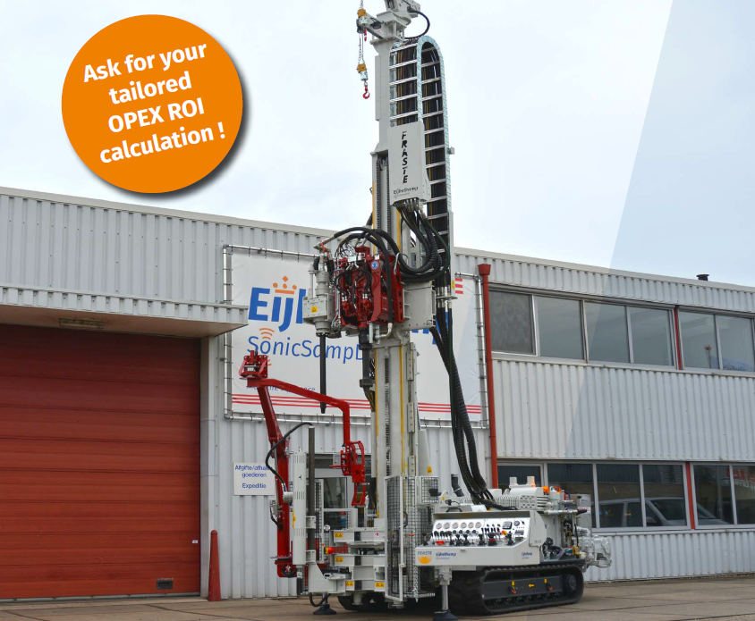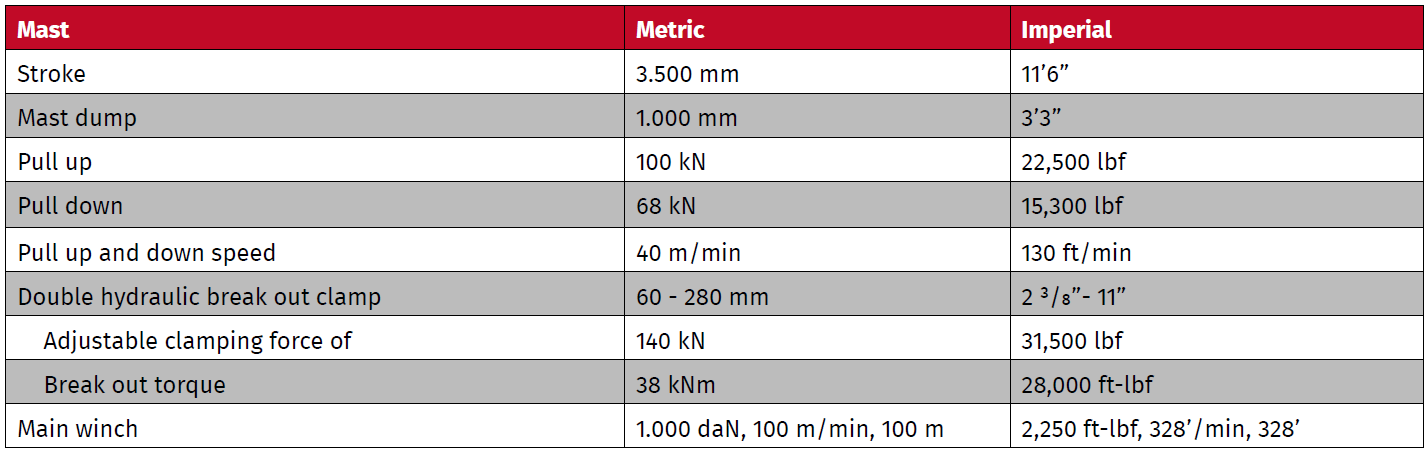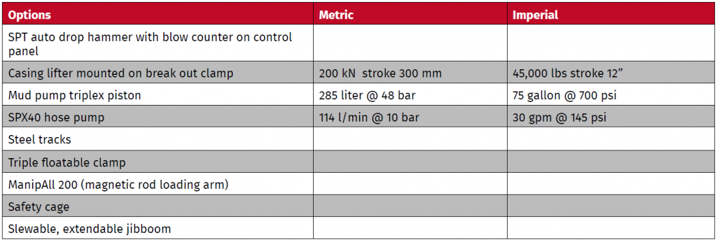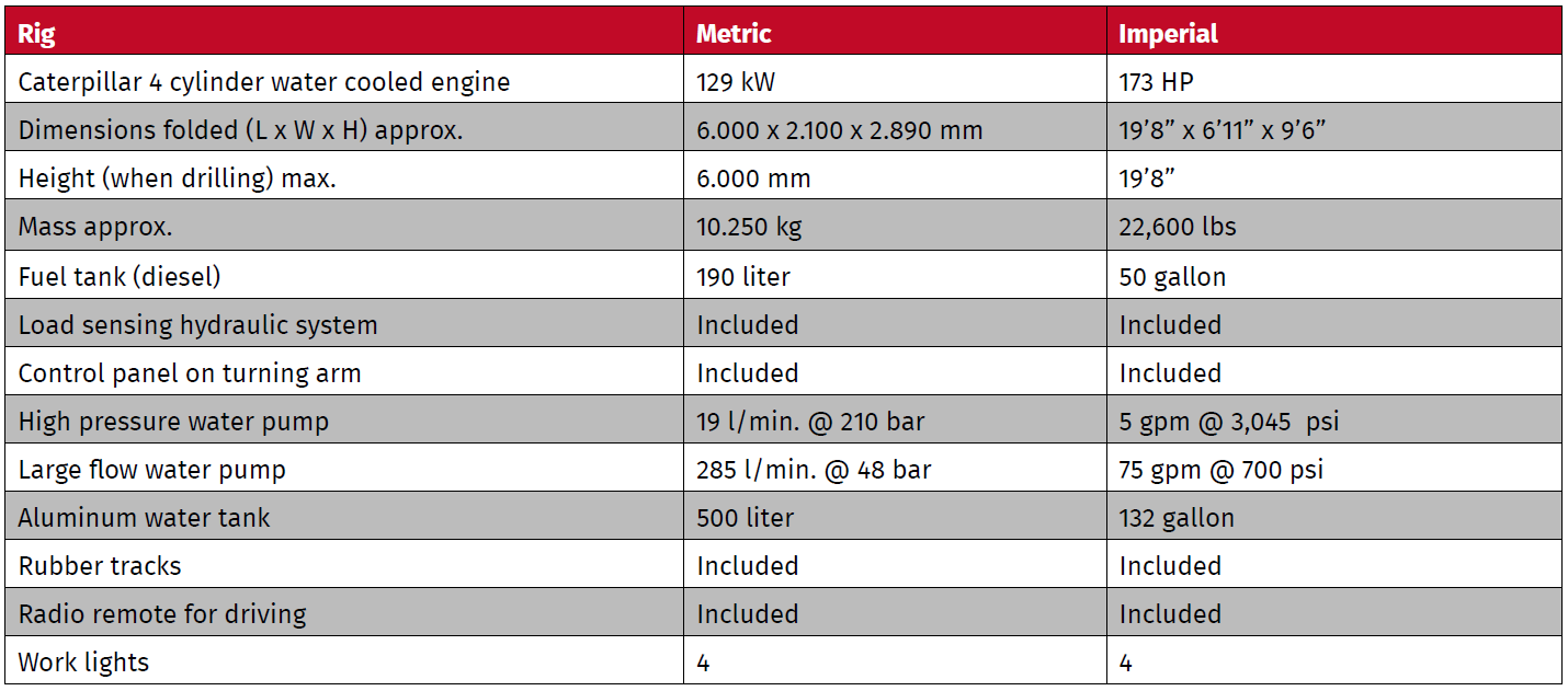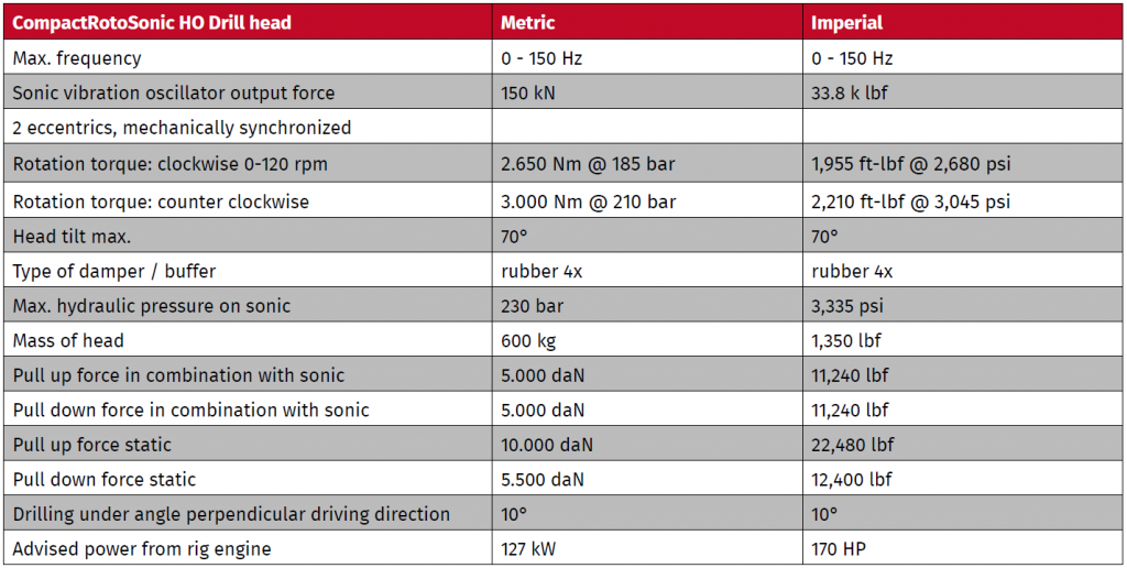 The CompactRotoSonic Crawler XL DUO (CRS XL DUO) is equipped with a CompactRotoSonic drillhead as well as a four speed rotation head. Both heads are mounted on a hydraulic side shift.